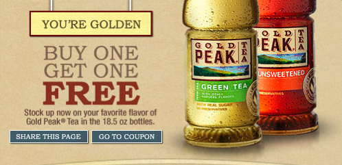 Print a BOGO coupon for Gold Peak Tea at coupons.com and on their facebook page.