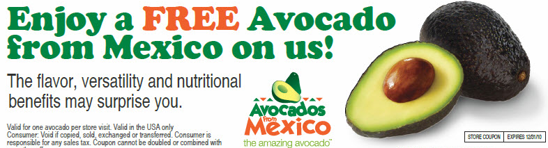 Enjoy a FREE Hass Avacado from Mexico. Print your coupon here and take it to your local supermarket! Expires 12/31/10.