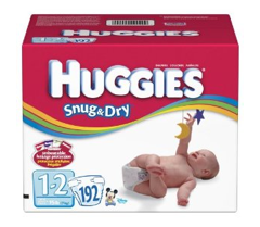 Amazon has a pretty sweet deal on Huggies Diapers right now! Get a box of Huggies Snug & Dry Diapers, Size 1-2, 192-Countor Huggies Snug & Dry Diapers, Size 4, 140-Count