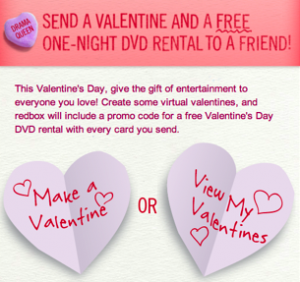 Visit Facebook and make a valentine and include a FREE Redbox rental with it.