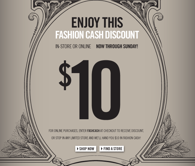 Sweet deal – get a $10 off $10 coupon for the Limited!