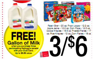 So if you purchase 5 Kellogg’s boxes on Friday or Saturday, you should get $5 off plus a coupon catalina printed at the register for FREE milk!!