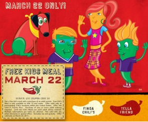 You can have two kid’s eat FREE at Chili’s with any adult entree purchase by printing this coupon.