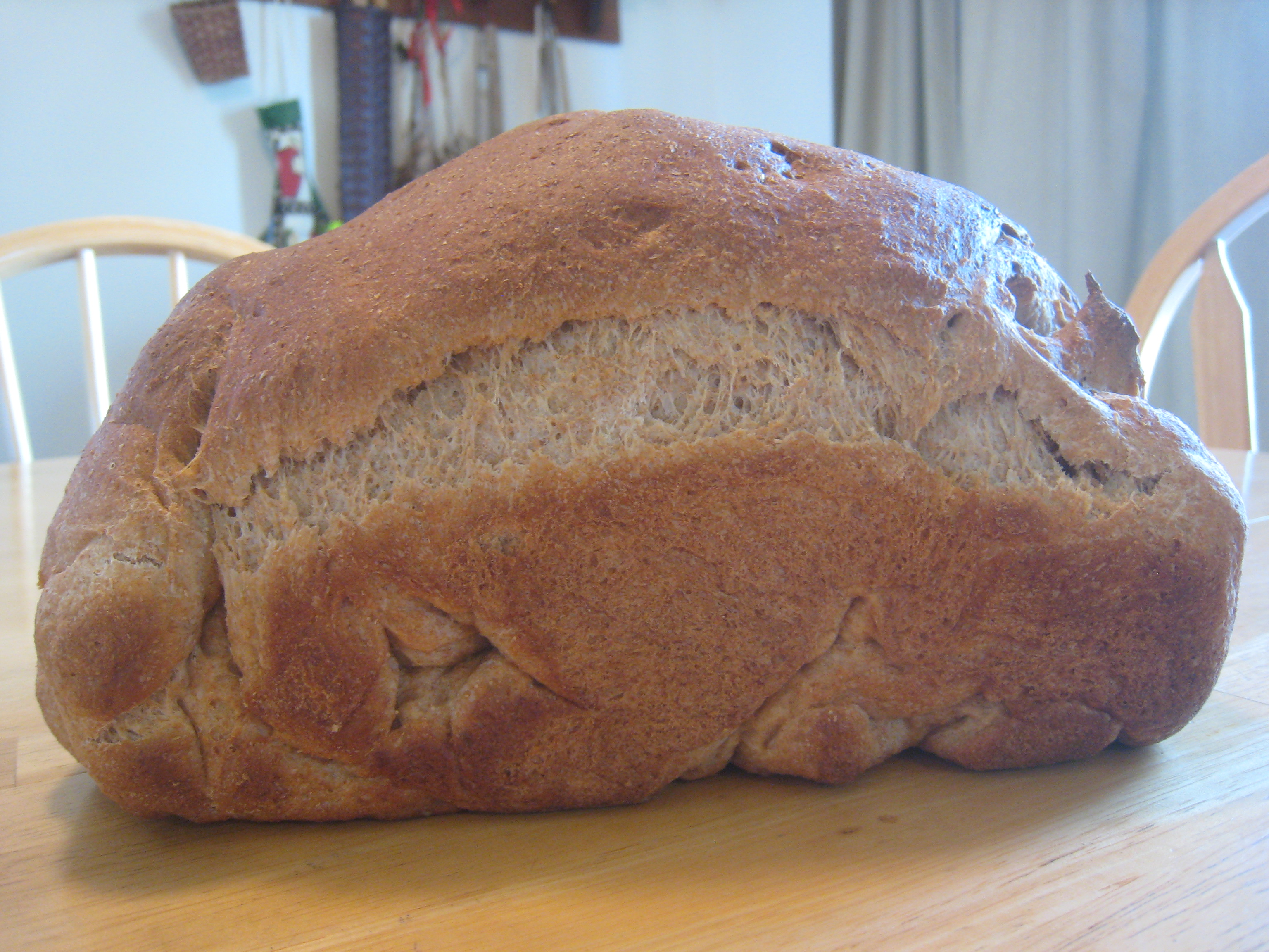 NOTE > I have not figured out exactly how frugal it really is to make at home, but for this loaf at least, it was worth it. I used the FREE Fleischman’s Yeast I got last fall at Weis Markets when it was on sale, the whole wheat flour from Sharp Shopper (5lb bag for only $.69!), and the FREE milk I got on the Weis cereal deal.