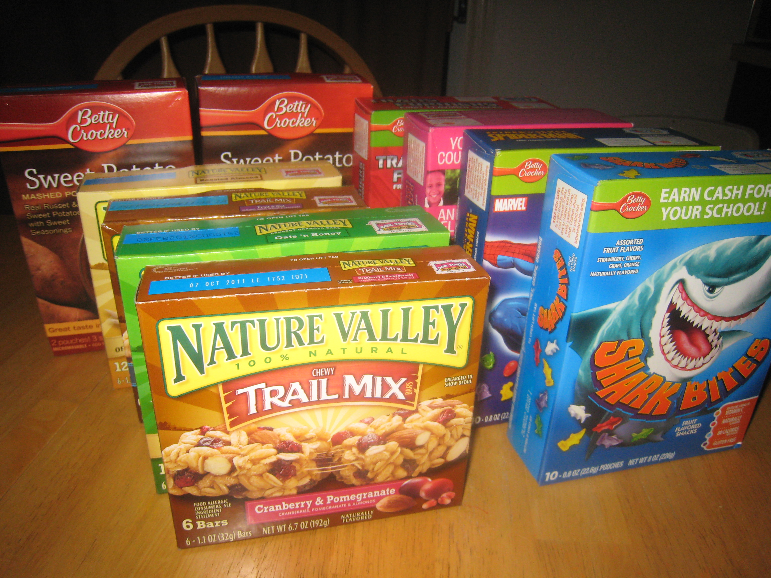4 boxes granola bars (use $0.75/2 Nature Valley Granola Bars, exp. 5-21-11 (SS 03/27/11))