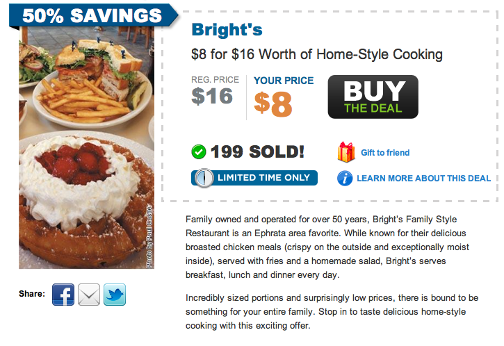 Buy a $16 certificate to Bright’s for only $8. And if you refer a friend, you get a discount, so it only costs you !!