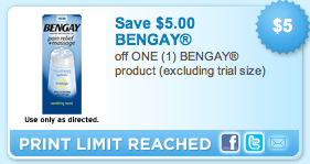 There is a new $5 off any Bengay coupon available on coupons.com. You can print this twice and get 2 coupons. Save them, and when you go to Walmart check to see if they have the small Bengay (yellow box priced at $4.23) in stock.
