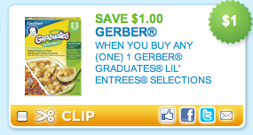 Also, if you need some toddler meals for when you are on the run and need something quick, you can use this Gerber coupon to get a meal for only $1.00. Not too bad for when you are in a pinch. There are some other Gerber snack coupons available too!