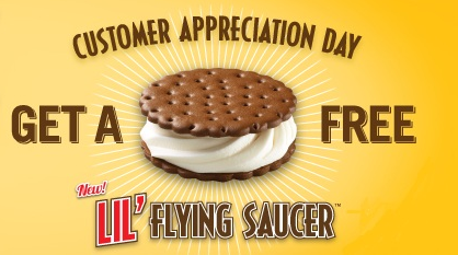 Carvel Ice Cream stores are having Customer Appreciation day today 9/22 and giving away FREE Lil’ Flying Saucer ice cream sandwiches! See more details here!