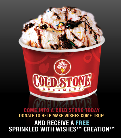 Until 8pm tonight stop into Cold Stone Creamery, for a FREE Sprinkled with Wishes Creation.