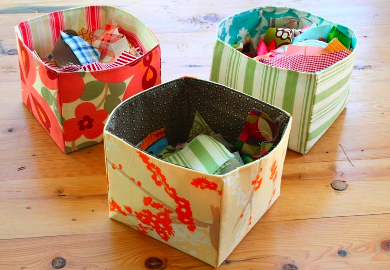 When I saw these fabric scrap baskets, I immediately thought they’d be perfect for keeping baby onesies and sleepers in — although you could use them for just about anything!