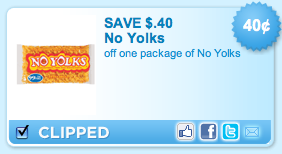 There is a new $.40/1 No Yolks coupon available. Use this at a store that doubles to get $.80 off! (Also, there is a $.40/1 SavingStar coupon available for No Yolks, so if you use both today, you’ll get $1.20 off per bag!)