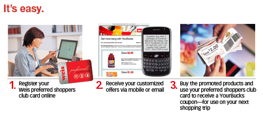 - Buy the products and use your Preferred Shoppers Club Card to receive YourBucks coupons to use on your next shopping trip!