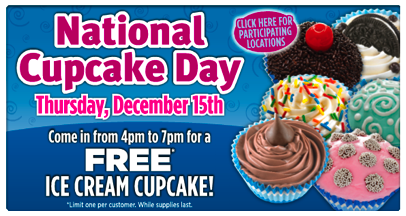 This Thursday, December 15, 2011, Maggie Moo’s in Lancaster is celebrating national cupcake day from 4 p.m. to 7 p.m. by giving away FREE Ice Cream Cupcakes!