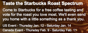 This Thursday through Saturday (January 12-14, 2012), Starbucks is hosting a FREE Coffee Tasting Event!