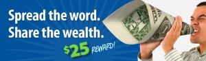 If you currently bank at Susquehanna Bank you can participate in theirSpread the Word, Share the Wealth campaign to earn $25 for anyone you refer.