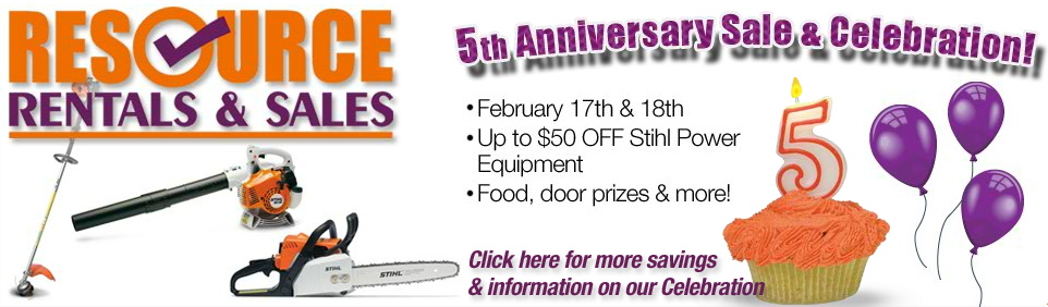 Resource Rentals & Sales, near Quarryville, is having an Anniversary Celebration on February 17 & 18. They will have coffee and donuts both mornings and FREE food for lunch and door prizes. They will also have vendor reps to answer questions.