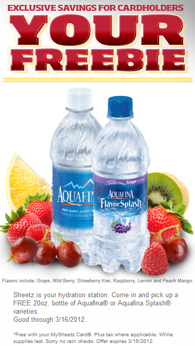 Pick up a FREE 20oz bottle of Aquafina or Aquafina Splash at Sheetz before 3/16/12!