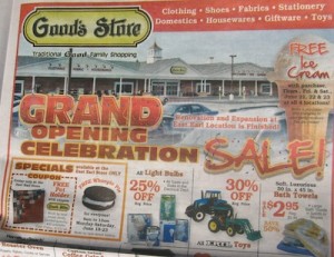 Good’s Store in East Earl will be having its Grand Opening Celebration June 18-23.