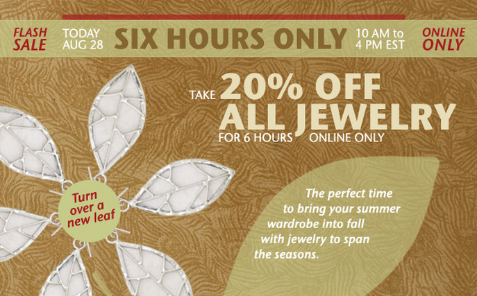 Today only from 10am to 4pm there is a flash sale of 20% off all Ten Thousand Villages jewelry online!