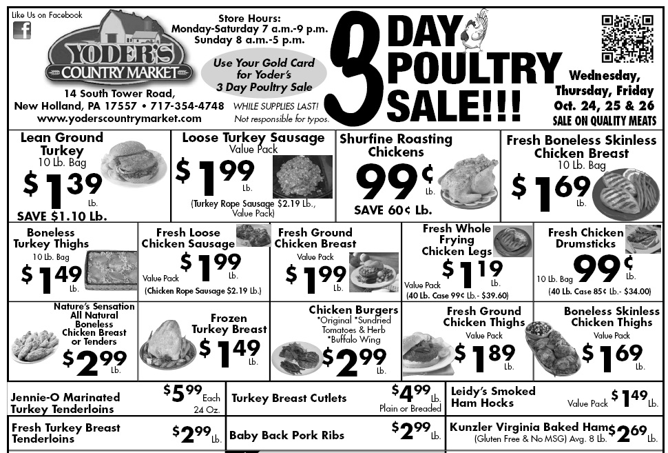 Next week is Yoder’s 3-Day Poultry sale. You may want to note: