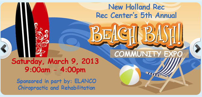 Mark your calendars — Saturday, March 9 is the New Holland Rec Beach Bash Community Expo. This is FREE to the public. There are bounce houses, the pool is open, and there are many vendors with giveaways and free food!