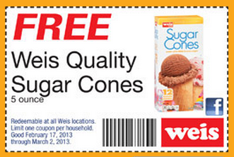 Print your coupon for FREE sugar cones at Weis. Expires 3/2/13.