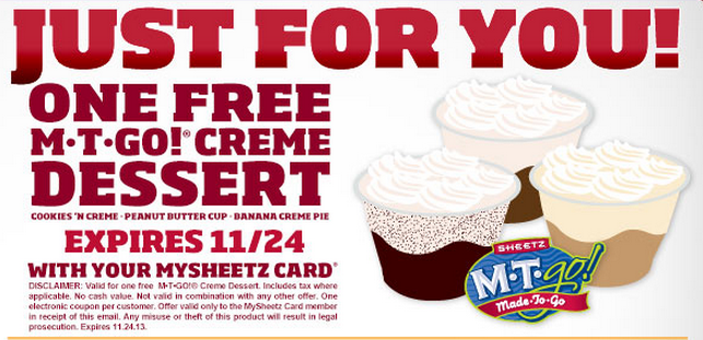 Get a FREE creme dessert with your Sheetz card right now. Choose from Cookies N Cream, Peanut Butter or Banana Cream Pie!