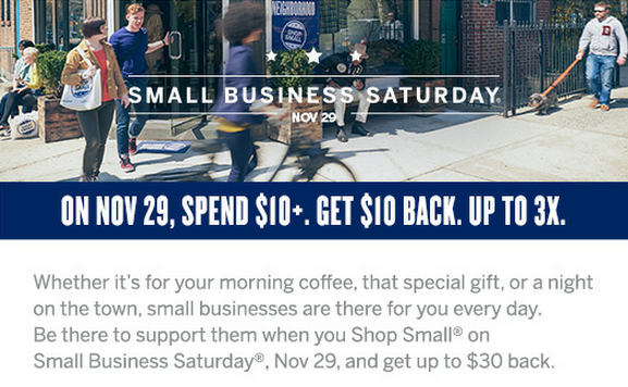 Did you know that American Express supports local businesses by paying you back for some of your purchases every year on the Saturday after Black Friday? This year, in 2014, if you have an American Express card and you use it a participating location, you will get a $10 statement credit for every $10 or more purchase you make (limit of 3 different purchases).