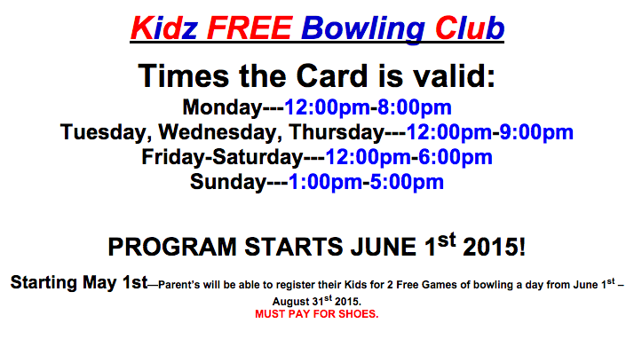 Be sure to sign up for the Kids Bowl FREE program at Dutch Lanes in Ephrata this summer!
