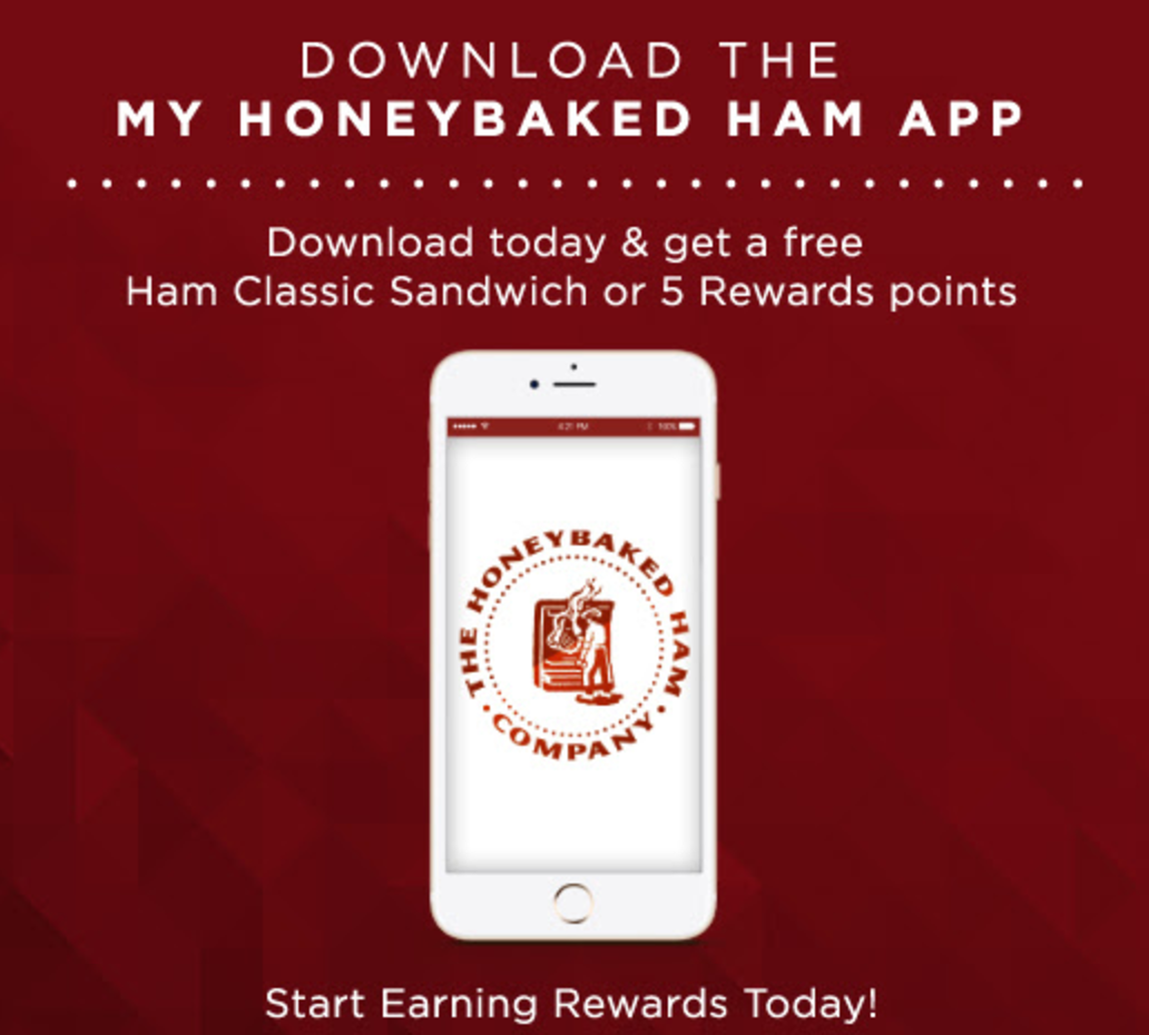 Now it gets even better though—because anyone who downloads the new HoneyBaked Ham app to their phone, will receive a FREE Ham Classic Sandwich! Woohoo!