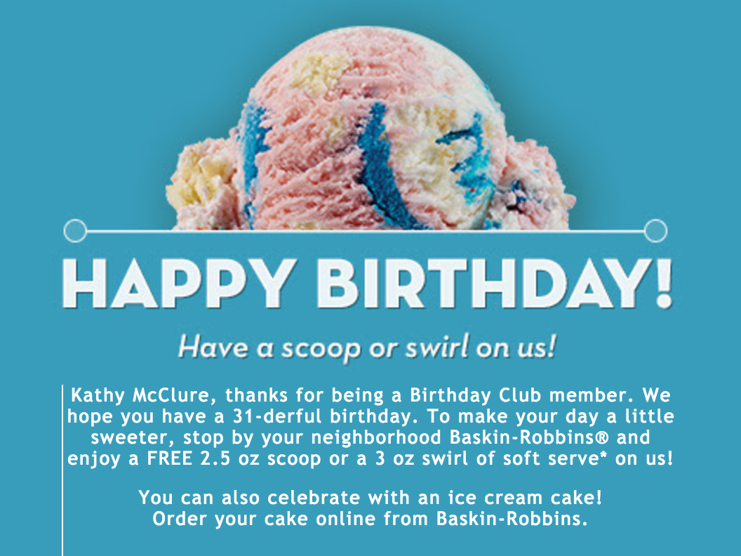 I am signed up for numerous birthday clubs, and each of them send me special coupons or discounts around my birthday. I look forward to receiving them every year!