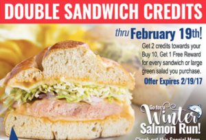 Isaac’s Restaurant & Deli. Thru February 19, customers will receive double sandwich credits toward their buy 10 get 1 sandwich free reward. You will earn credits based on every sandwich or large green salad you order. On the 20th, customers will receive TRIPLE CREDITS towards your reward!