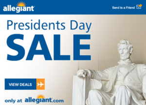 Allegiant Airlines. See all their President’s Day specials on flights from Harrisburg. With prices starting at $40 one way, you might consider an impromptu spring break vacation!