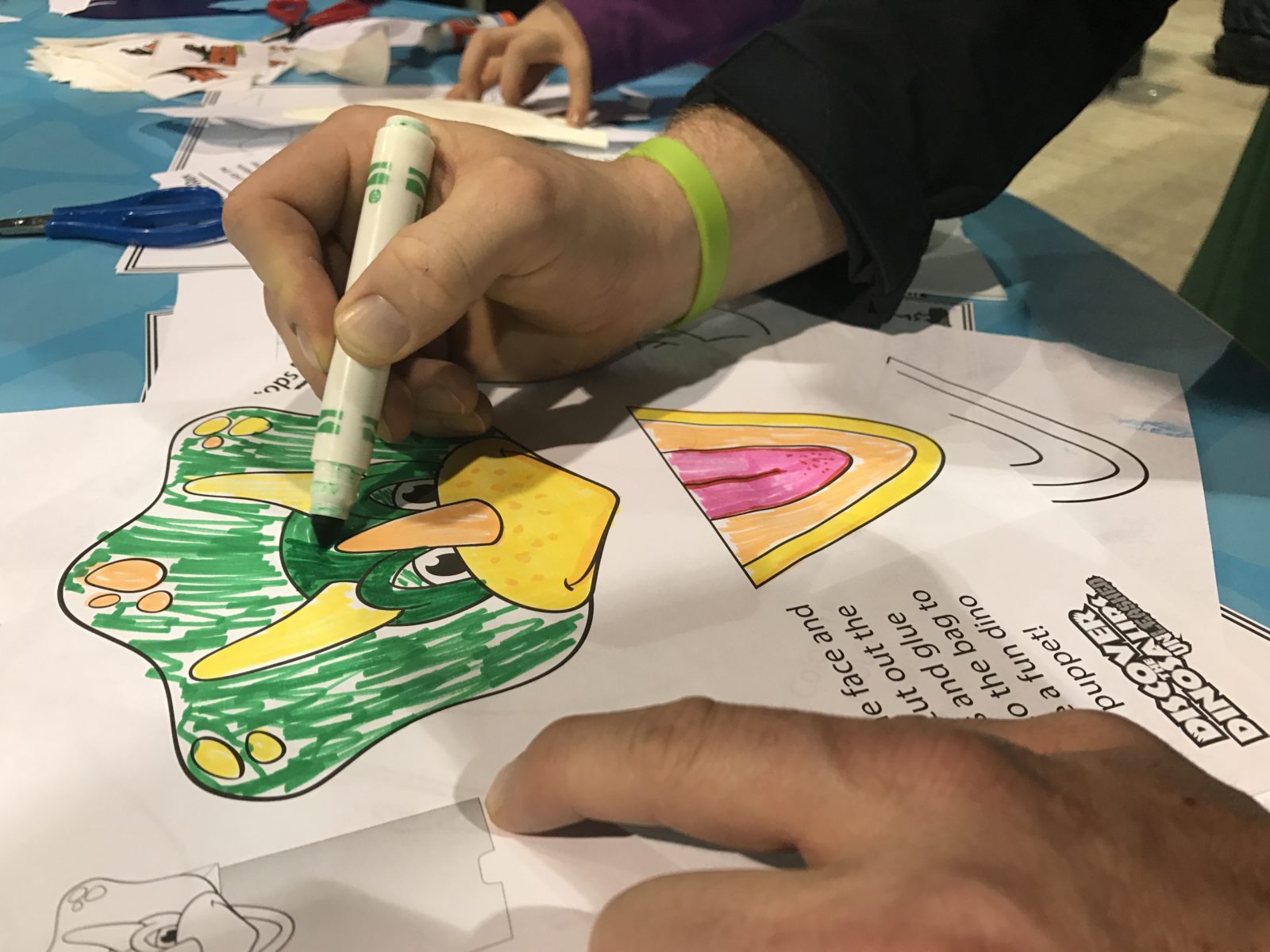 Our kids fell in love with the crafts! I am pretty sure we spent at least half an hour at the craft table, making dinosaurs out of paper plates, coloring sheets and creating paperbag puppets. Even my husband impressed me with his artistic skills—who knew!?