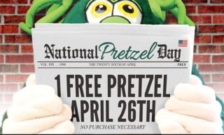 Visit Philly Pretzel Factory on April 26th and get one Free Pretzel for each and every customer!!
