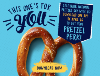Download the Auntie Anne’s Pretzel App to get a reward for a FREE pretzel on the 26th!