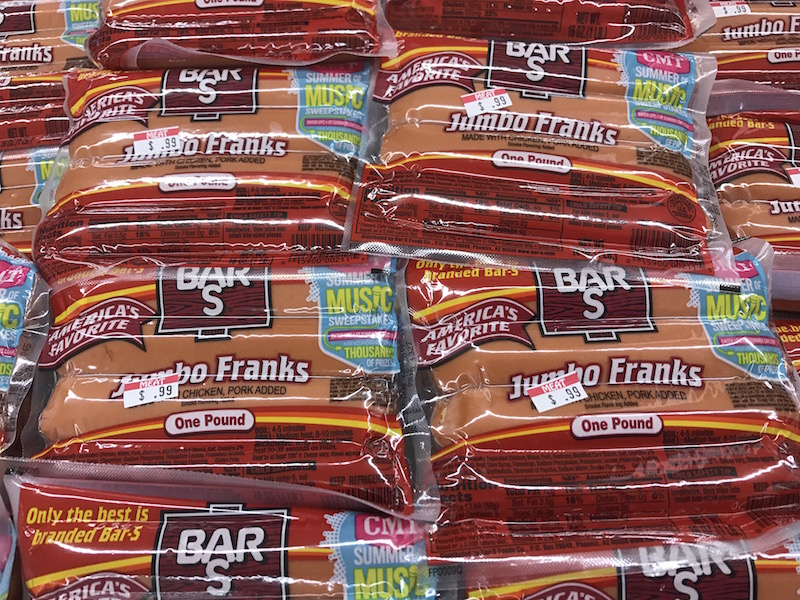 I often find hot dogs for $.50-.79. But you’ll always find at least one or two varieties for less than $1 per pack!