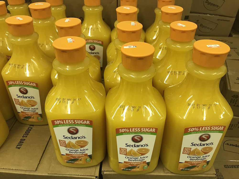 You’ll find orange juice for the best price in the cold room, usually around $1-1.50.
