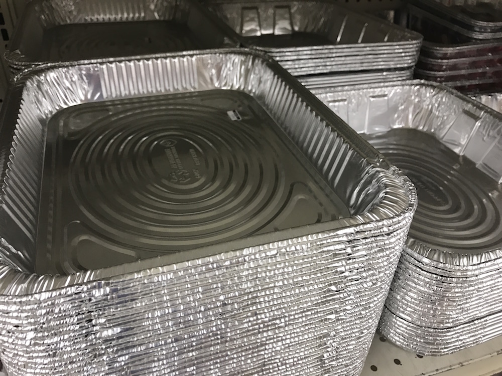 These $.59 aluminum baking pans are excellent for taking a family a meal or freezing dinners. I often like to double my recipes —eating the first half and freezing the second half.