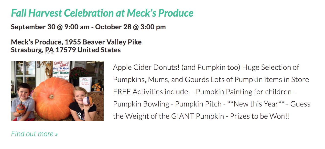 - Fall Harvest Celebration at Meck’s Produce (Friday)
