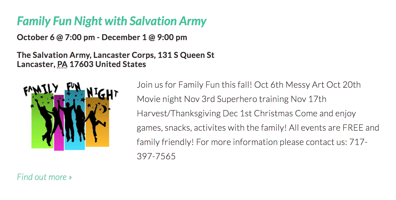 - Family Fun Night with Salvation Army (Friday)