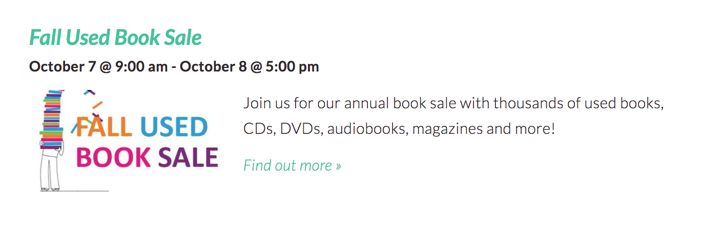 - Fall Used Book Sale (Friday-Sunday)