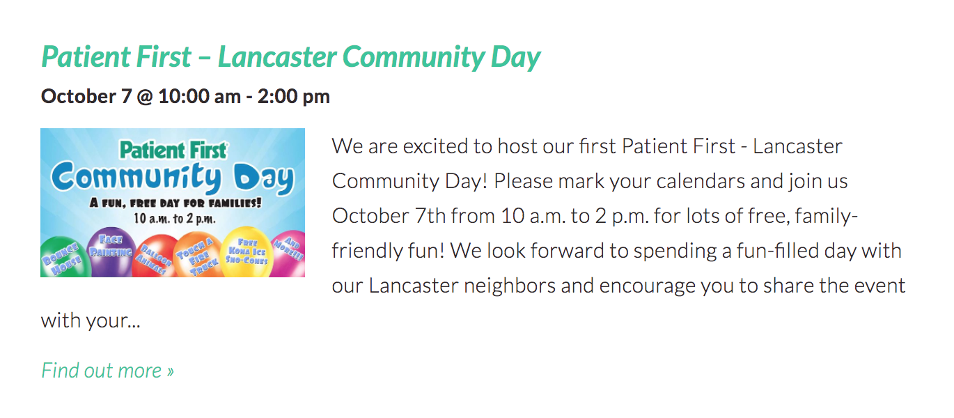 - Patient First — Lancaster Community Day (Saturday)