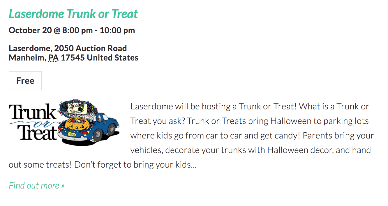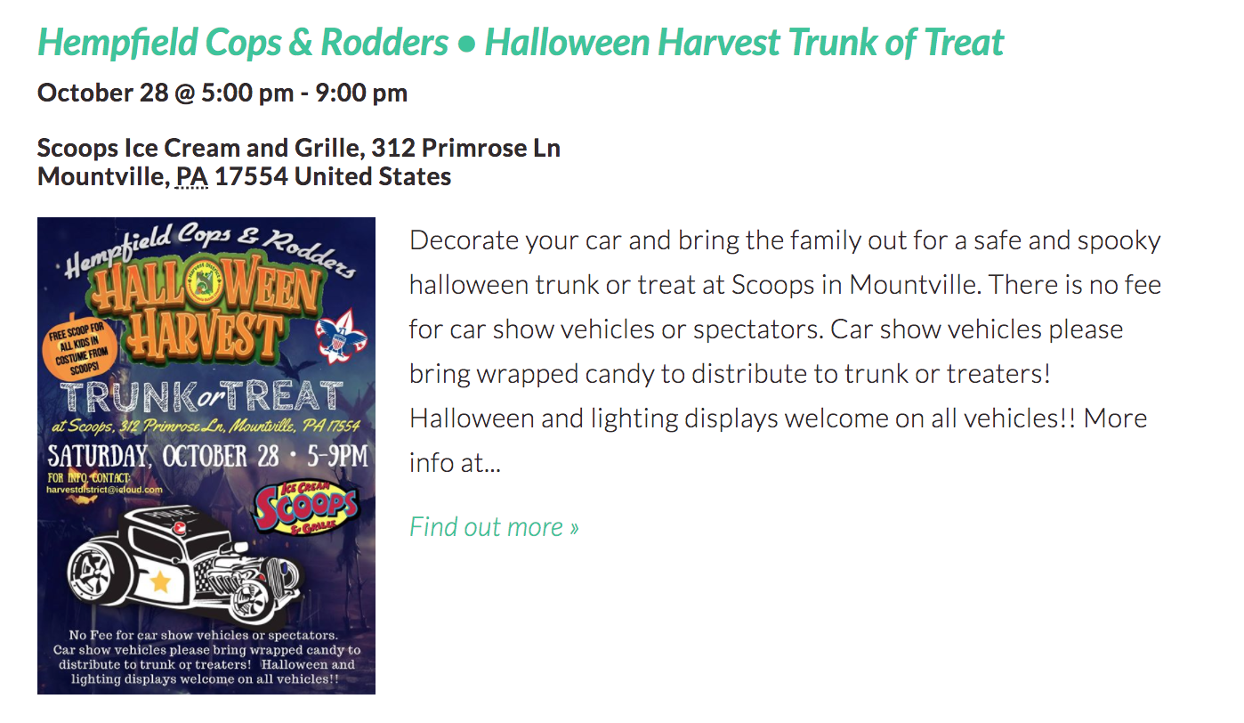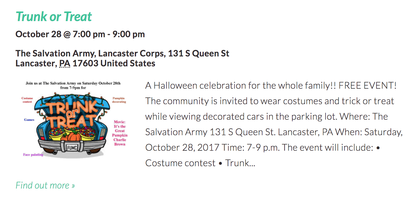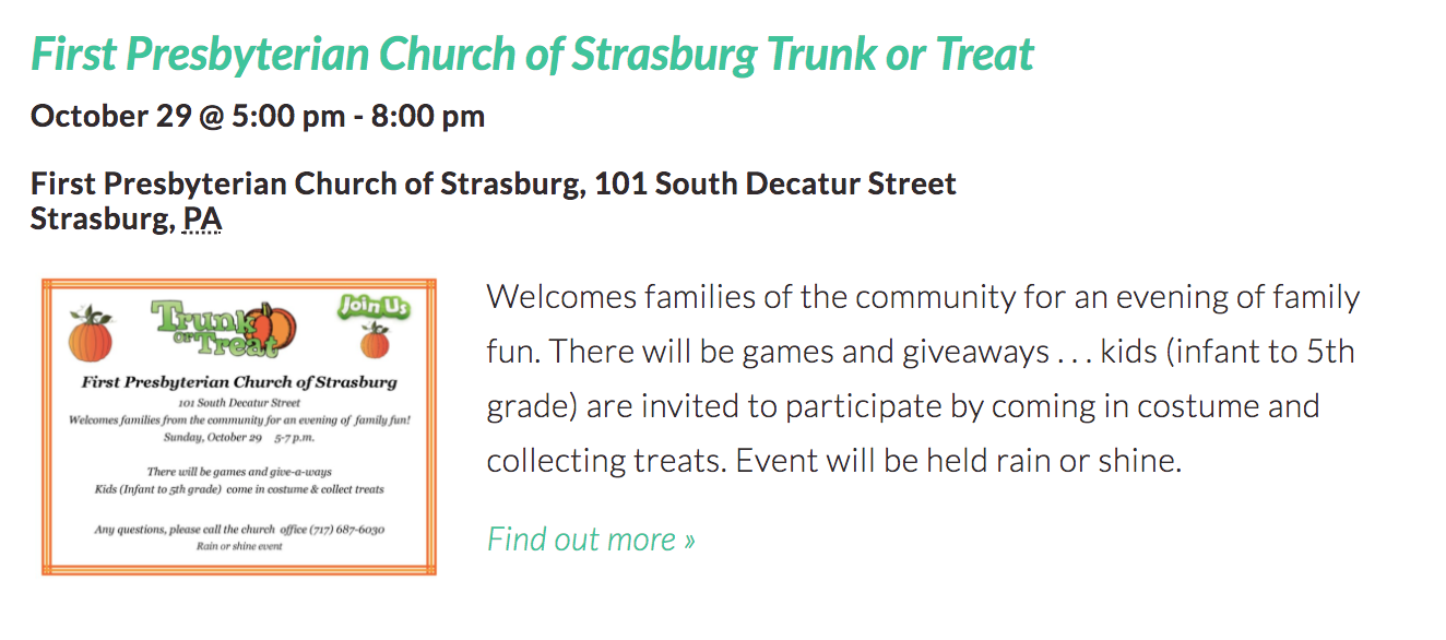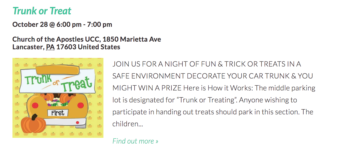 I was a little shocked to find so many trunk or treat events in Lancaster County this year! I’m sure I missed some, but here are 20 Trunk or Treat Events happening around Lancaster County from October 20—31, 2017!