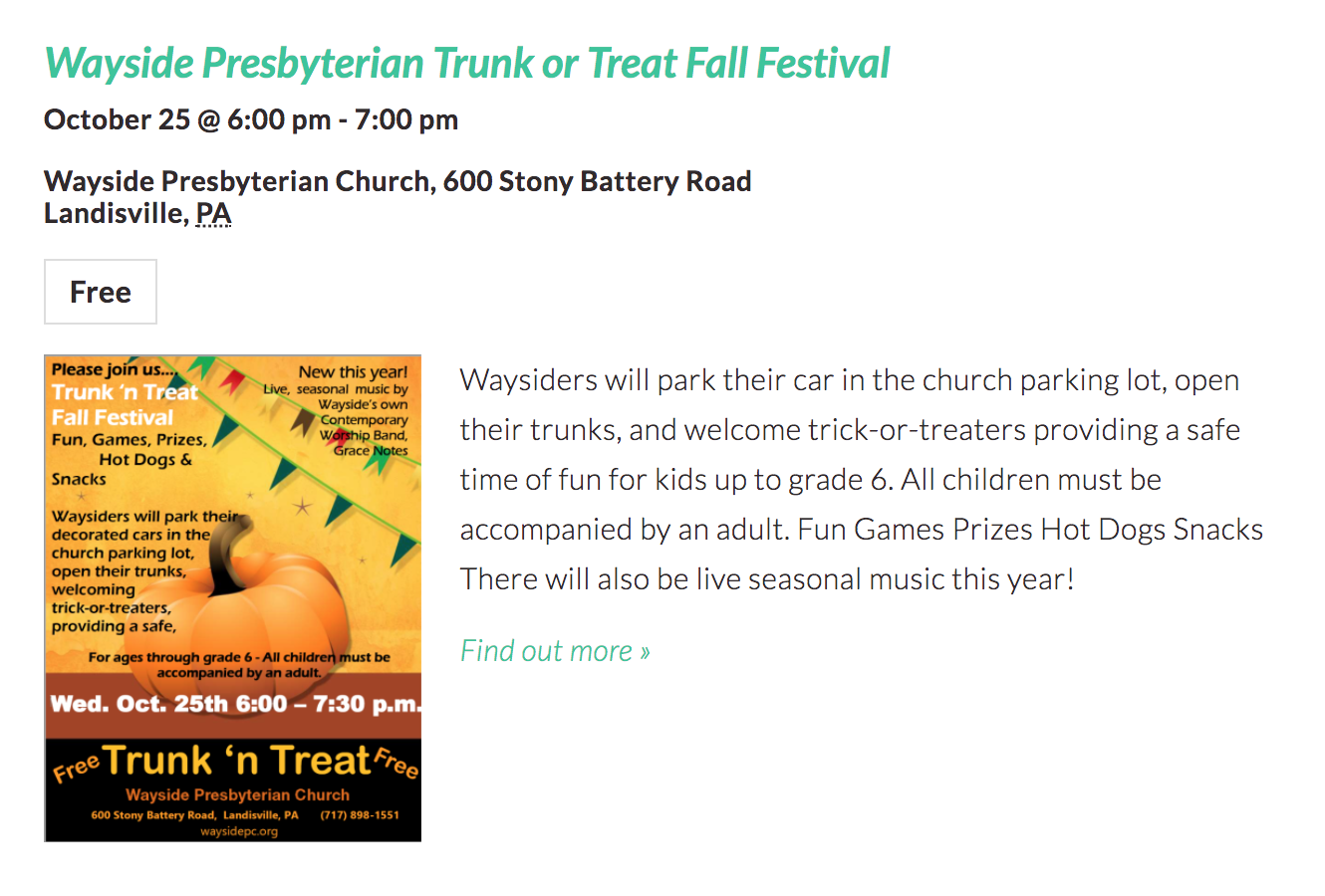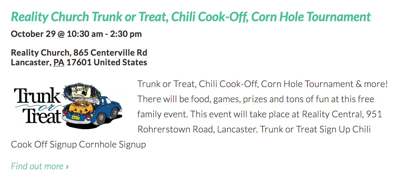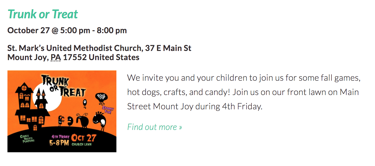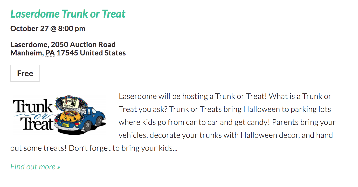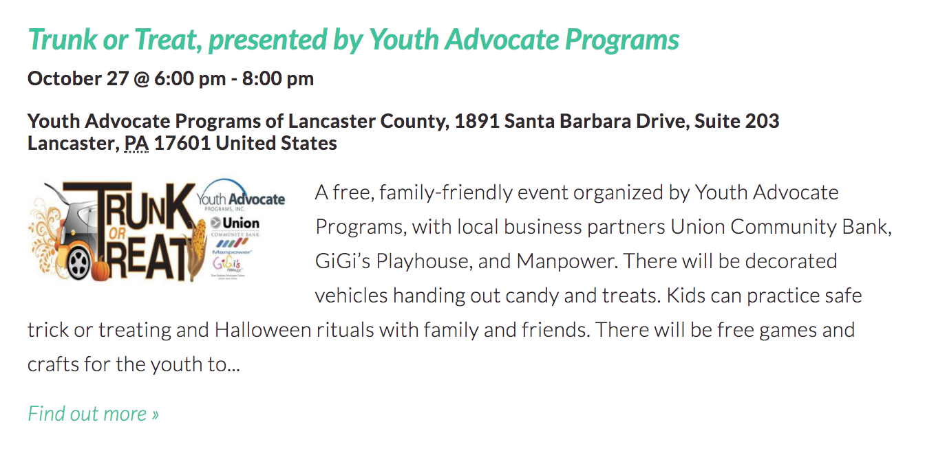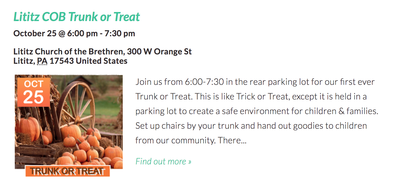 I was a little shocked to find so many trunk or treat events in Lancaster County this year! I’m sure I missed some, but here are 20 Trunk or Treat Events happening around Lancaster County from October 20—31, 2017!