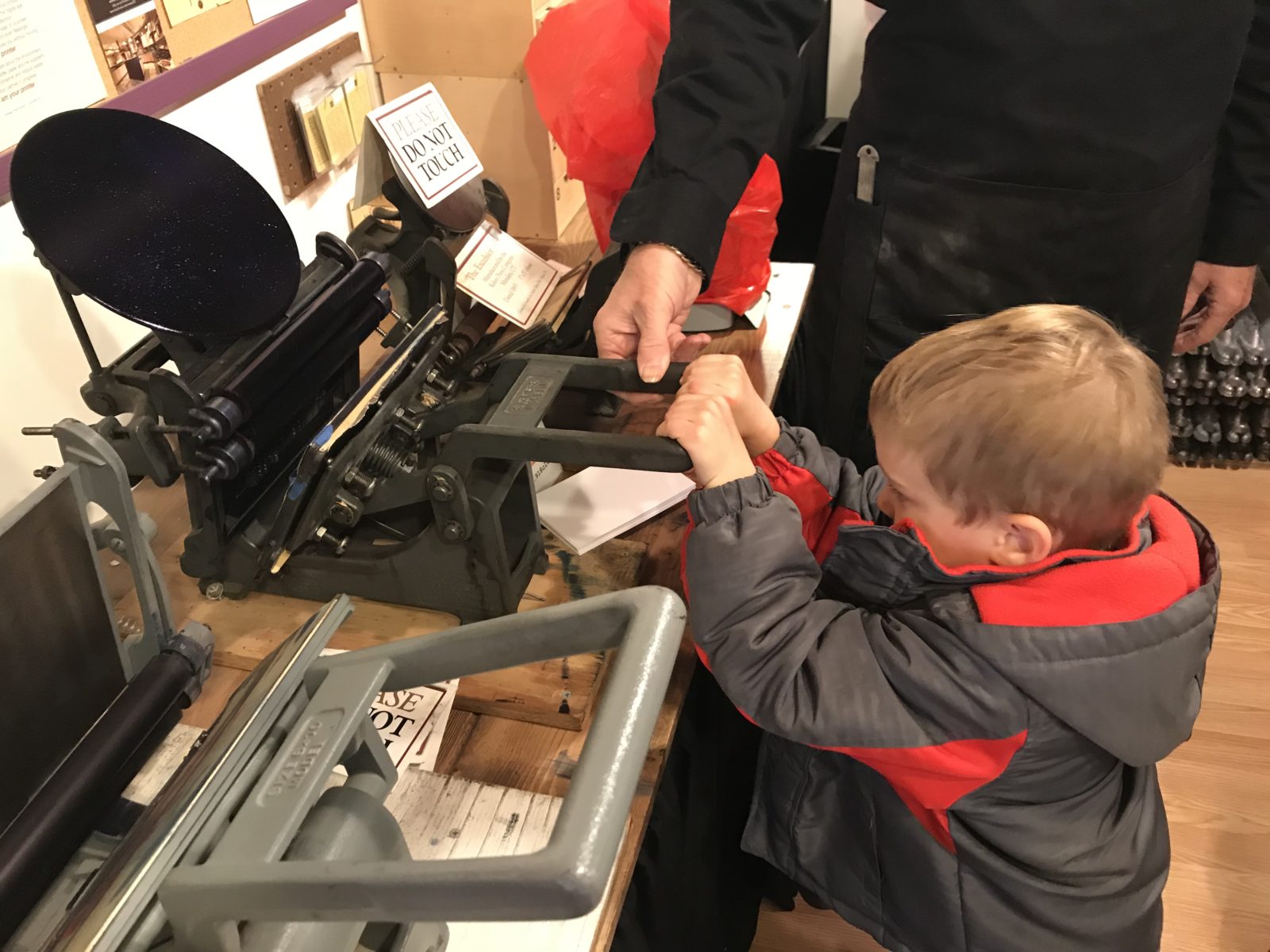You’ll also learn about the letterpress that came after the Gutenberg press, and you’ll get to give that a try to.