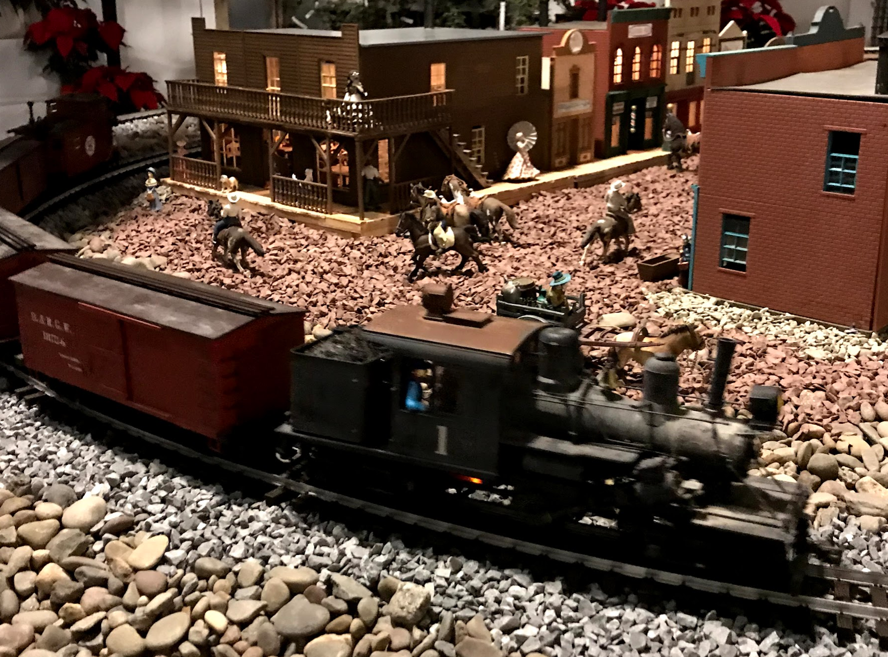 They took their time when they set this up to include multiple tracks, buildings, tunnels, bridges and I love how they incorporated succulents and poinsettias throughout the scenery, really bringing it to life.