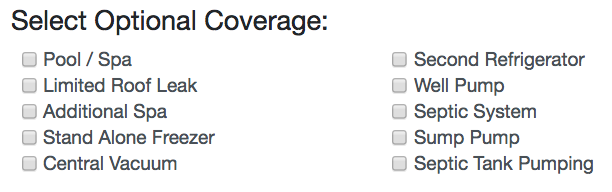 You can choose a total plan or a basic plan. You can also choose to select optional coverage on specific items like pools, second refrigerators, sump pumps and central vacuums.