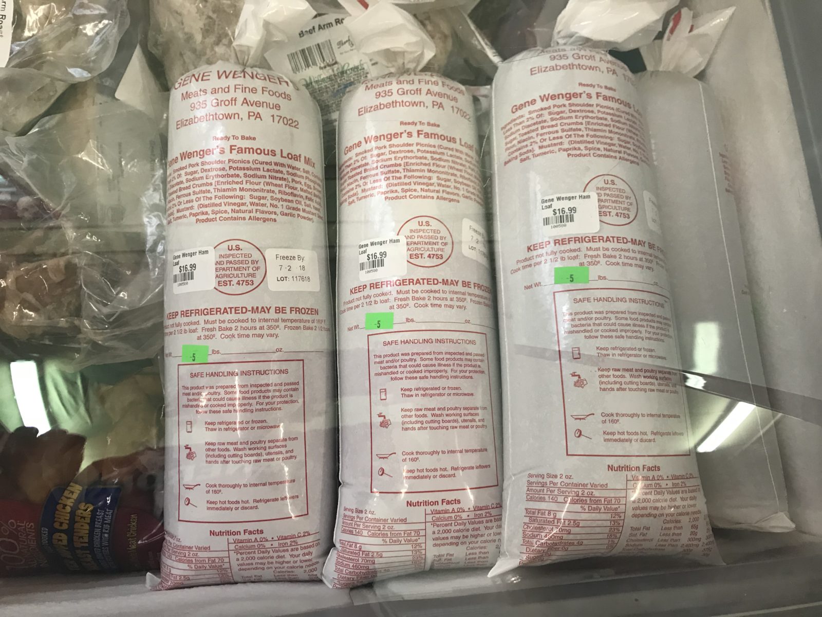 In the freezer section I found Gene Wenger’s hamloaf, frozen pizzas, chicken nuggets, ice cream, soft pretzels and more. All at similar prices to any other local discount grocery store.